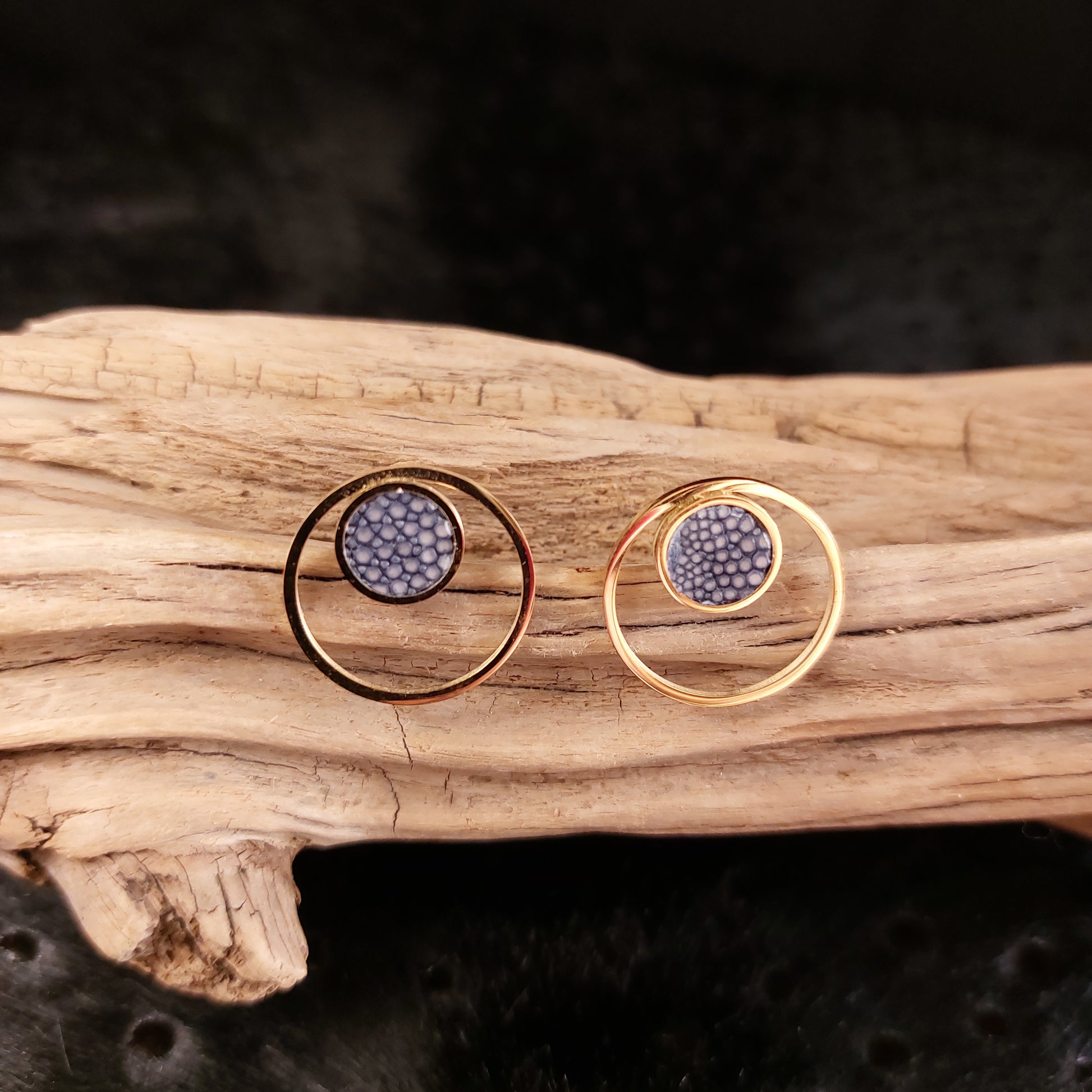 Boucles d'oreilles en Acier Inox Doré et Galuchat